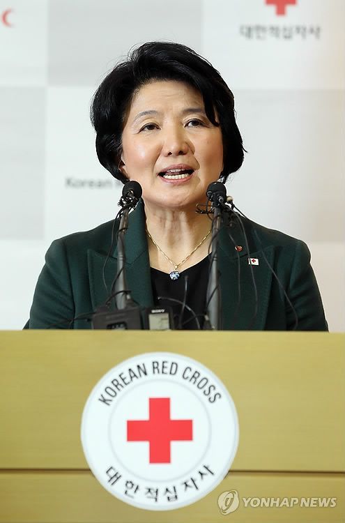 South Korea's Red Cross chief Yu Jung-keun holds a press conference in Seoul on Feb. 14, 2012, to propose that the two Koreas hold a Red Cross meeting next week to discuss reinstating reunions of family members separated for nearly six decades. (Yonhap)