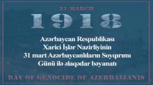 Azerbaijan`s Ministry of Foreign Affairs has issued a statement on March 31- Day of Genocide of Azerbaijanis.