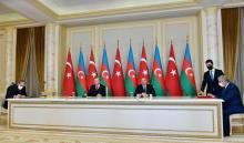 Following the ceremony of signing documents, President of the Republic of Azerbaijan Ilham Aliyev and President of the Republic of Turkey Recep Tayyip Erdogan have made press statements.
