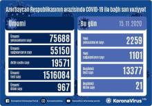 Azerbaijan registered 2,259 COVID-19 cases over the past 24 hours, a new record of daily increase, the Task Force under the Cabinet of Ministers told AZERTAC.