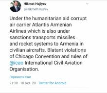 Azerbaijan’s Prosecutor General's Office: 9 civilians were killed as a result of missiles fired by Armenian armed forces on apartment buildings in Ganja