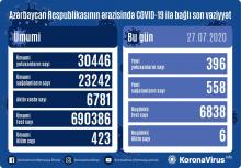 The number of COVID-19 cases in Azerbaijan over the past day has risen by 417, reaching 30,050, the Task Force under the Cabinet of Ministers told AZERTAC.
