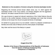 The National Awakening Party of the Indonesian parliament has issued a statement on the escalation of tension along Armenia-Azerbaijan border.