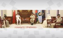 Manama, Apr. 26 (BNA): BDF Commander-in-Chief Field Marshal Shaikh Khalifa bin Ahmed Al Khalifa received outgoing British Military Attaché to Bahrain, Marine Lieutenant Colonel Paul Windsor.