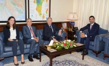 Manama, Oct. 27 (BNA): Electricity and Water Affairs Minister Wael bin Nasser Al Mubarak received the International Peace Institute (IPI) President Terje Roed-Larson.