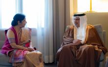Manama, July 15 (BNA): Minister of Foreign Affairs, Shaikh Khalid bin Ahmed bin Mohammad Al Khalifa, met today with the Minister of External Affairs of the Republic of India, Sushma Swaraj, who is