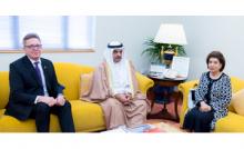 Manama, June 14 (BNA): Advisor to His Royal Highness the Prime Minister Shaikh Salman bin Khalifa Al Khalifa received at Gudaibiya Palace today outgoing German Ambassador to Bahrain Alfred Simms-Pr