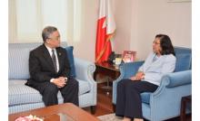 Manama, June 14 (BNA): Health Minister Faeqa bin Said Al-Saleh received the newly appointed Thai Ambassador to Bahrain Thanis Na Songkhla.
