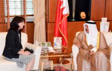 Manama, Nov. 14 (BNA): Royal Court's Minister Shaikh Khalid bin Ahmed Al Khalifa today received the Ambassador of Turkey to Bahrain, Hatun Demirer.