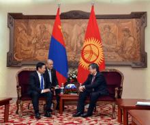 Ulaanbaatar /MONTSAME/ The Prime Minister N.Altankhuyag Wednesday met Kyrgyzstan's Premier Mr Zhantoro Satybaldiyev in Bishkek, Kyrgyzstan, during the 11th Prime Ministerial Meeting of t