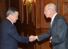 Ulaanbaatar, Mongolia /MONTSAME/ The Minister of Health N.Udval received on Friday Mr N.Eitan, the Minister-Counselor of Israel's Embassy in Beijing, and Mr D.Amar, the Honorary Consul