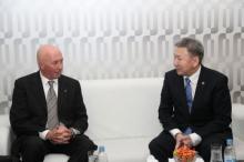 Ulaanbaatar /MONTSAME/ The Prime Minister of Mongolia Mr N.Altankhuyag Tuesday welcomed and greeted Mr Djoomart Otorbaev, the Head of Kyrgyzstan's executive power, on the Square of Chingis Khaan in
