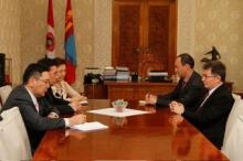 Ulaanbaatar /MONTSAME/ Parliamentary vice Speaker M.Enkhbold received on Monday Ambassador of Russia to Mongolia Iskander Azizov in the State House.