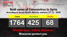 Damascus, SANA- Health Ministry announced on Monday that 87 new coronavirus cases were registered in the country and 8 cases have recovered while 4 ones have passed away.