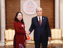 Hanoi, October 14 (VNA) – Vietnamese Vice President Vo Thi Anh Xuan met with the Presidents of Kazakhstan, Turkey, and Uzbekistan on October 13, as part of her trip to attend the 6th Summit of the