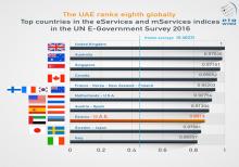 ABU DHABI, 1st August 2016 (WAM) -- The UAE has moved up four places in its position in the e-smart services index of the E-Government Development Index, EGDI, issued by the United Nations Departme