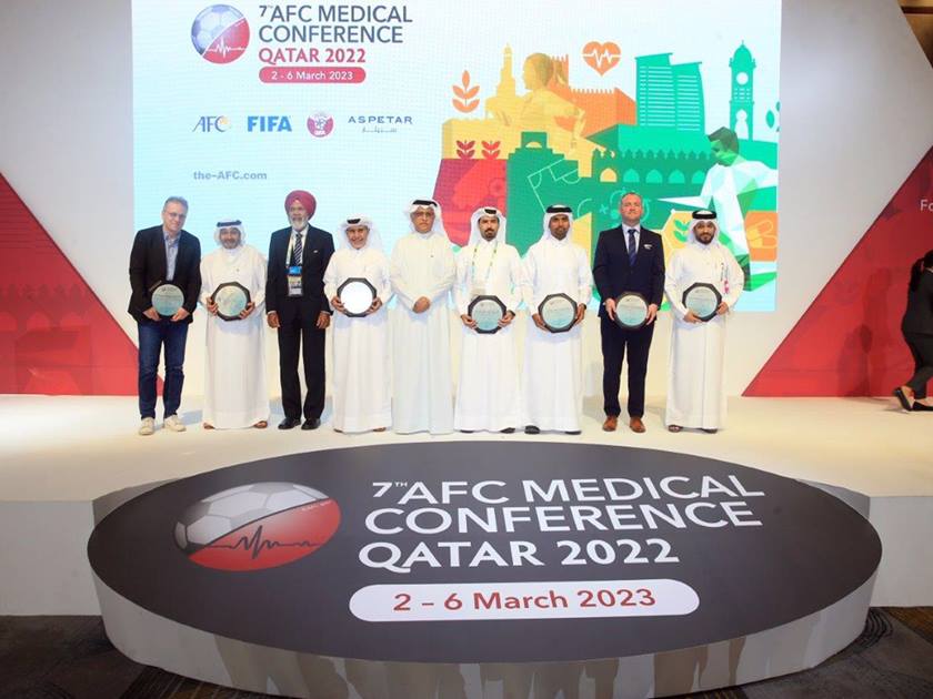 During the ceremony, the AFC President presented awards to Aspetar Hospital, Qatar Football Association, Aspire Academy, FIFA, UEFA, Qatar Anti-Doping Laboratory and Aspire Zone Foundation, in appreciation of their efforts in making the conference a success. .