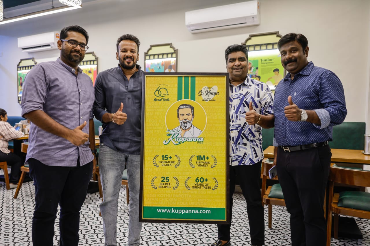 Denes, a Malaysian celebrity who acted and produced the local Tamil comedy-drama Pasanga series, shared that Junior Kuppanna's menu caters to both biryani lovers and enthusiasts of spicy non-vegetarian dishes, offering an extensive array of authentic Kongu delicacies.