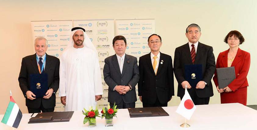 The Chairman of Abu Dhabi Department of Economic Development, Nasser Ahmed Alsowaidi, met yesterday at Abu Dhabi Exhibition Center, with Toshimitsu Motegi, the Japanese Minister of Economy, Trade and Industry, on the sidelines of the World Future Energy Summit held during Abu Dhabi Sustainability Week.