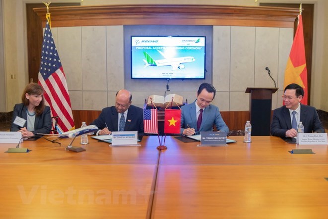 Washington DC, June 27 (VNA) – Property developer FLC Group, which owns Bamboo Airways, signed an agreement to buy 20 787-9 Dreamliner aircraft from Boeing of the US on June 25.
