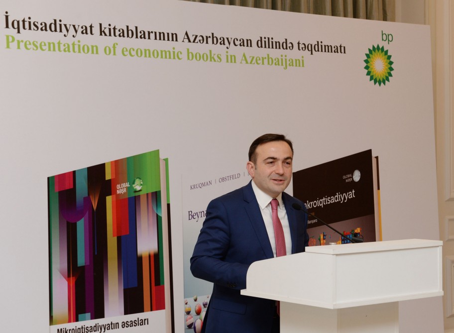 Baku, December 13, AZERTAC BP has presented the Azerbaijani version of three international books on economics which it has sponsored as part of its support for educational development in Azerbaijan. The three books are the most widely used at the leading international universities and have been translated into many languages. This is the first time they have been translated into Azerbaijani with the view that they will be used by the students and professors of economics as well as by a wider group of people specialising in economic theories, policies and developments. The three books are: International Economics: Theory and Policy by Paul R. Krugman, Maurice Obstfeld and Marc J. Melitz; Macroeconomics by Olivier Blanchard; and Principles of Microeconomics by Karl E. Case, Ray C. Fair and Sharon E. Oster. “As Azerbaijan’s long-term and reliable partner, BP is proud to be supporting initiatives and activities that help transfer international knowledge and expertise to Azerbaijan. This is part of our support for education as a priority area of BP’s sponsorship policy in Azerbaijan. The books which we selected for Azerbaijani edition are in demand at the leading international universities and as such are our contribution to all those who teach and study economics. In fact, by translating and printing these books we have given Azerbaijani students and professors of economics direct access to the treasury of global knowledge and experience. We hope to continue this initiative to help local universities in an effort to bring the best international educational practices, achievements and experience to Azerbaijan,” said BP Azerbaijan`s Vice President for Communications, External Affairs, Strategy and Region Bakhtiyar Aslanbayli as he addressed the event held on the occasion of public presentation of the three books. The books, which are BP’s gift to local universities, will also be available to all interested people through local libraries and related academic institutions. The total cost of the translation and printing of the three books is around 268,000AZN. BP is one of the world's most renowned oil and gas suppliers, and is dedicated to safely developing and producing essential sources of energy. In Azerbaijan, BP has been present for 26 years safely, efficiently and reliably operating major oil and gas exploration, development and transportation projects. To date, it has invested together with its partners more than $72 billion into projects in the country and has had a positive impact on local communities through generating tens of thousands of jobs and through its extensive social investment activities directed at building local capabilities, education, development of communities, local enterprises, sporting potential as well as research and promotion of the country’s rich cultural heritage. In Azerbaijan, BP directly employs more than 2,550 Azerbaijani citizens who make over 90 per cent of the company’s professional staff.