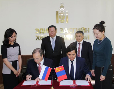 The delegation of the visit includes Sergei Lykov, a managing director and board member of Development Bank of Russia (VnyeshEconomBank). He was at a meeting with N.Batbayar, the Minister of economic development on Wednesday morning. The two shared opinions on bilateral economic issues and inked the note of obligation. This document addresses issues of advanced cooperation in economic sector, financing of the bilateral trade projects, and use of own national currencies (MNT and RUB) when trading certain range of items. "One of the advantages of trade with the national currencies is a tendency of increased export from Mongolia to Russia,"expects B.Munkhbat, a director of Development Bank.