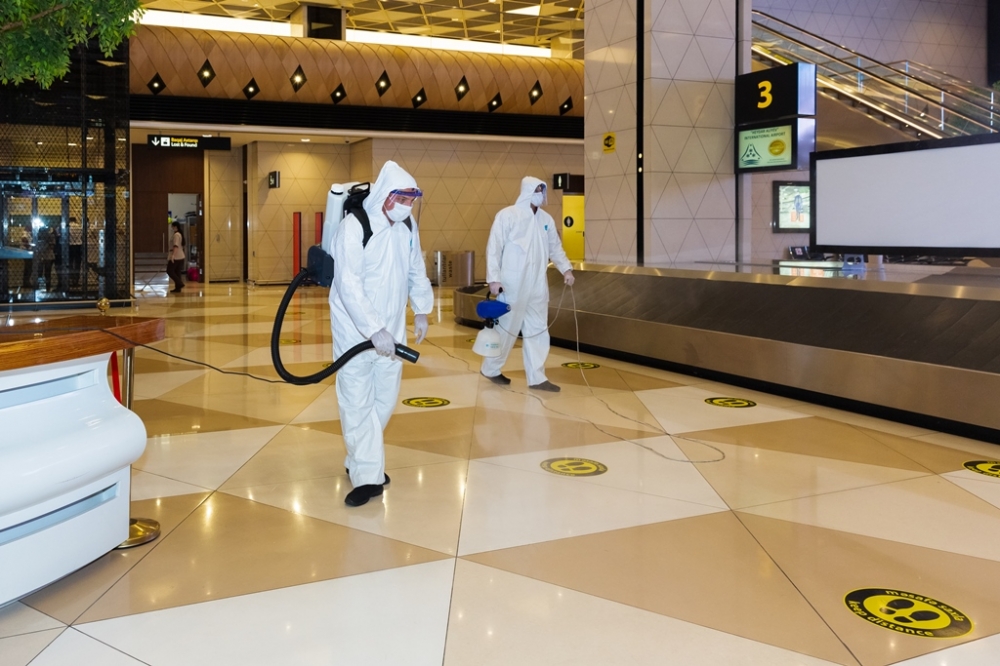 On the night of September 4th, full preventive disinfection was carried out at the Heydar Aliyev International Airport. Disinfection operations were performed at night when there were no passengers and staff at the airport.