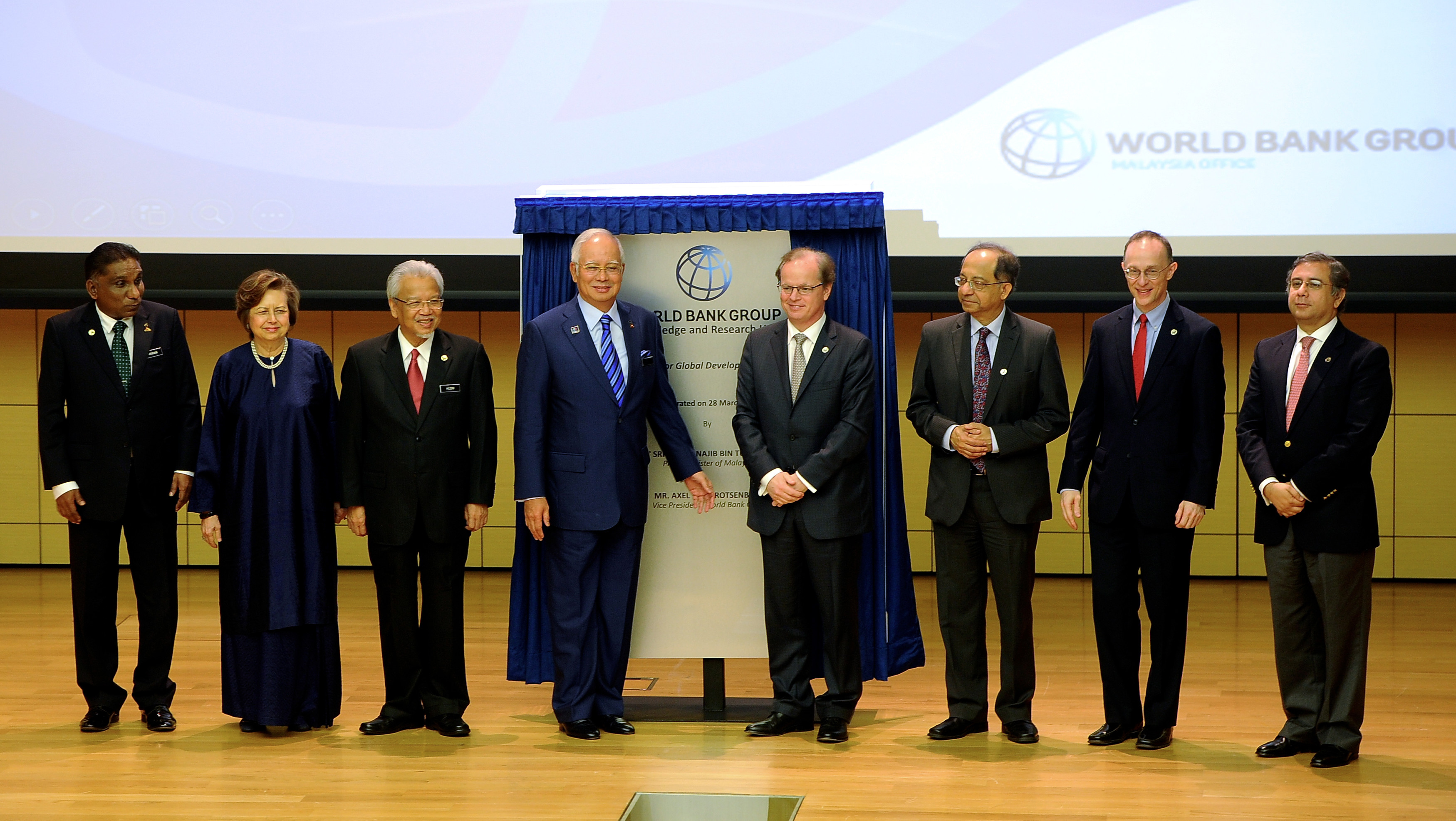 KUALA LUMPUR, March 28 (Bernama) -- Prime Minister Najib Razak said the establishment of the World Bank Group Office in Kuala Lumpur goes to show that Malaysia is one of the most favoured location in the region for international organisations and businesses. Despite the global headwinds and uncertainties, the premier said the local economy continued to expand by five per cent last year, supported by resilient domestic demand and steady expansion in the services, construction and manufacturing sectors. "Our fundamentals are strong. "We are proud of our record and of our continued insistence on taking the right decisions for Malaysia and our economy, so that we do not learn from the course of building a sustainable and inclusive future for all Malaysians," he said at the launch of the World Bank Group office here Monday. The office will also be a regional research hub which will focus on regional and global development policies. This, he said, would contribute to the highly regarded World Bank Doing Business Report and provide operational support for dialouges, enterprise and commerce in South East, East and South Asia. Najib said the office was also expected to be knowledge hub, bringing together Malaysia and World Bank experts in areas where both parties can share each other's experiences of growth with other World Bank members, in particular developing economies. "Among the key areas which others can draw on what we have done and learnt are growth poverty reduction, public sector performance, providing modern and integrated financial services and,economic planning and development," he said. "The office presence here in Malaysia will also provide opportunities for talented Malaysians through a programme which will have selected individuals from the public sector seconded to the World Bank Office. "This arrangement will indeed be mutually beneficial and enriching experience for all parties," he added. The Prime Minister also applauded the bank's continuous support of Malaysia's development agenda while recognising efforts made by the government. "We look forward to working closely with the World Bank Group to share our development experience and help achieve the twins goals of ending extreme poverty and promoting prosperity for all in the region and globally," he said. Present was Second Finance Minister Ahmad Husni Hanadzlah, International Trade and Industry Minister Mustapa Mohamed, Treasury Secretary-General Dr Mohd Irwan Serigar Abdullah, Bank Negara Malaysia Governor Dr Zeti Akhtar Aziz and World Bank Regional Vice-President for East-Asia and Pacific Axel van Trotsenburg. (photoBERNAMA) -- BERNAMA