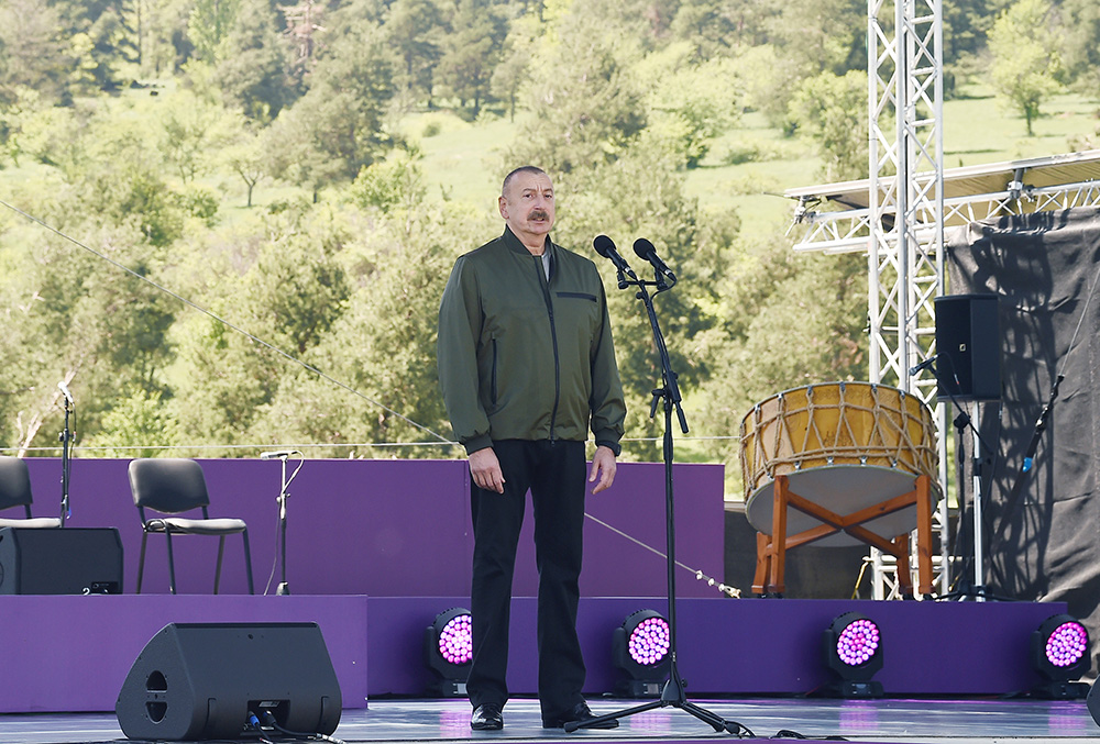 Shusha, May 12, AZERTAC Shusha, the cultural capital of Azerbaijan is hosting the “Kharibulbul” music festival. After 29 years, Shusha, the cradle of ancient culture, welcomes its natives and guests again. President of the Republic of Azerbaijan Ilham Aliyev, First Lady Mehriban Aliyeva, their daughters Leyla Aliyeva and Arzu Aliyeva attended the “Kharibulbul” festival organized on Jidir Duzu plain in Shusha. The head of state made an opening speech at the festival. Speech of President Ilham Aliyev - Dear friends, it is a significant day in the history of our country today. After a long break, the “Kharibulbul” festival is being held in the Jidir Duzu plain in Shusha, a city sacred to each of us. I heartily congratulate you and all the people of Azerbaijan on this occasion. We have been looking forward to this day for 30 years. We have lived with a longing for the Motherland for 30 years. We had to reconcile with this injustice for 30 years, but we did not put up with it. We were always saying that we would never come to terms with this situation and that we would liberate our native lands from the occupiers at any cost, and we did exactly that. The “Kharibulbul” music festival, being held this year for the first time after a long break, is dedicated to the memory of our martyrs. We are indebted to our heroic soldiers. We are indebted to the people of Azerbaijan. Our people united and showed solidarity, or people united like a fist, and this victory was won by the people of Azerbaijan. This is a victory for all of us. I would request that we commemorate our heroic martyrs of the Patriotic War with a minute of silence. May Allah rest the souls of all our martyrs in peace! We have restored this remarkable tradition, and “Kharibulbul” festival will now be held in Shusha every year. This year's festival covers representatives of the peoples living in Azerbaijan. Representatives of different nations living in our country will perform in this festival. I gave this recommendation to the Heydar Aliyev Foundation, the organizer of the festival, because all the peoples living in Azerbaijan have contributed a great deal to the Patriotic War. The Patriotic War has once again shown that all peoples in Azerbaijan live in friendship, brotherhood and solidarity, and this 44-day war showed again that there is national unity and national solidarity in our country. It is no coincidence that the first festival will feature representatives of the peoples living in Azerbaijan. So we are sending another message to the whole world from here, from Shusha, from our ancient land. Countries should develop in this way, in multi-religious, multi-ethnic countries and societies. There is development, there is unity, there is national solidarity, there is peace here. We follow what is happening in different parts of the world, and I can say that we could foresee the present-day situation a few years ago. Therefore, we promoted multiculturalism, promoted the coexistence of different peoples both domestically and internationally, including through numerous events held in our country. We were saying that this was possible. We were saying in the example of Azerbaijan that it was possible, we were showing that, we shared our experience, we shared our views, and I think that our efforts have paid off because the world has a clearer picture of this issue now. The 44-day war resulted in a complete victory for Azerbaijan. Azerbaijan won a complete victory, expelled the invaders from ancient Azerbaijani lands and raised the Azerbaijani flag in all liberated lands. The 44-day war is our glorious history. Every day of the 44 days represents a heroic saga. Every day we gave martyrs, shed blood and yet we moved forward. Every day we moved forward. There was not a single day in the 44 days on which we would take a step back. We only moved forward, giving martyrs and shedding blood. Our people were and we united, and this conditioned this Victory. More than 300 towns and villages were liberated from the invaders on the battlefield, and the liberation of Shusha, the impregnable fortress, is a separate heroic saga. Everyone visiting Shusha and Azerbaijani citizens who have already come to Shusha can confirm that liberating it from occupation required great heroism, courage and self-sacrifice. Our heroic soldiers climbed these steep rocks and liberated Shusha from the invaders in a hand-to-hand battle although the occupiers fired at us from tanks and artillery. We gave martyrs in the battles for Shusha. But the national spirit that drove us forward secured this victory. The liberation of Shusha actually meant the collapse of the Armenian army and the Armenian state. Because a day later, Armenia was forced to sign an act of capitulation, which was drafted in accordance with our conditions, and we returned Lachin, Kalbajar and Aghdam districts without firing a single shot. It is no coincidence that the day of the liberation of Shusha, 8 November, was declared an official public holiday in Azerbaijan, it was declared Victory Day, and we will celebrate this holiday every year. Shusha is a national treasure of the Azerbaijani people. The recent announcement of Shusha as the cultural capital of Azerbaijan shows this again. Shusha is an ancient Azerbaijani city. Next year we will celebrate the 270th anniversary of Shusha. Panahali Khan founded Shusha in 1752, and from that time until the occupation, Azerbaijanis always lived in this city. Hard as the Armenians tried, they could not erase the Azerbaijani spirit from Shusha. Yes, the loathsome enemy destroyed our buildings, our mosques, our historical monuments. However, Shusha was able to preserve its Azerbaijani spirit. Shusha was in captivity for 28 and a half years, but it did not bend, did not break, preserved its dignity, protected its national spirit, protected the spirit of Azerbaijan. Dear friends, I am sure that many of you are here for the first time since the occupa