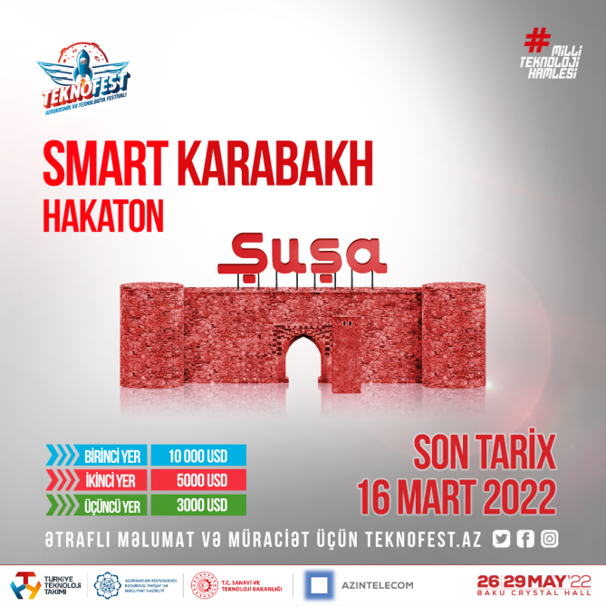A unique opportunity has been created for students, startups and entrepreneurs who want to be closely involved in Karabakh’s revival programme to present their innovative projects on the Smart City concept at the TEKNOFEST Aerospace and Technology Festival, the Ministry of Digital Development and Transport told AZERTAC.