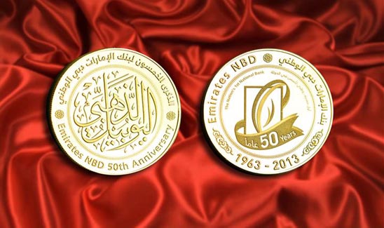 Abu Dhabi: Central Bank of the UAE has announced that effective Monday, it will be issuing a commemorative gold coin and a commemorative silver coin on the occasion of the Emirates NBD's Golden Jubilee.