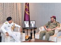 Doha, June 14 (QNA) - Amiri Guard Commander Lieutenant-General Hazza bin Khalil Al Shahwani met on Tuesday morning Defense Attache at the Embassy of the Islamic Republic of Pakistan to Qatar Commodore Saqib Ilyas on the occasion of the end of his tenure in the country.