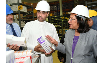 Manama, July 18 (BNA): In accordance with the directives of HRH Prime Minister Prince Khalifa bin Salman Al Khalifa to speed up the provision of medicines to meet citizens needs, Health Minister Faeqa bint Saeed Al Saleh today paid a visit to inspect the process of unloading shipments of approximately 430 types of medicines at the ministry’s main warehouse.