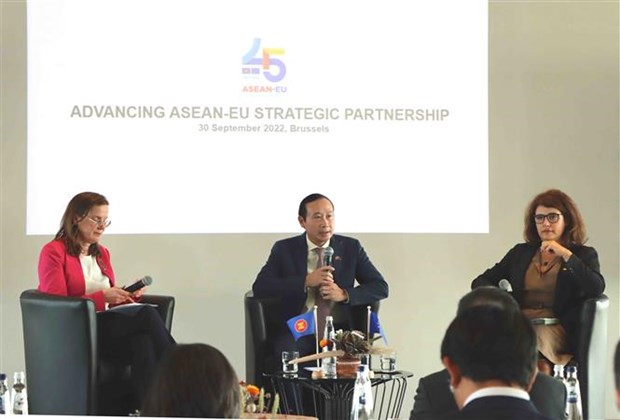 Chairing the discussion on sustainable trade development and building adaptive supply chains, Vietnamese Ambassador to Belgium and Head of the Vietnam’s Delegation to the EU Nguyen Van Thao highly valued the effective cooperation between ASEAN and the EU and positive results obtained in the recent time.