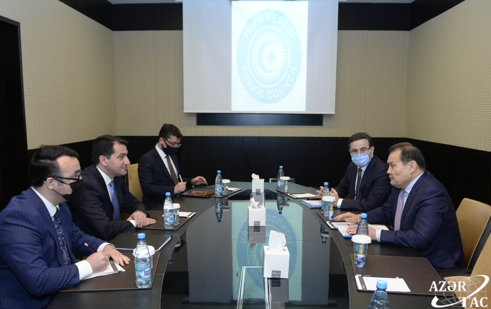 Assistant to the Azerbaijani President, Head of Foreign Policy Affairs Department of the Presidential Administration Hikmat Hajiyev has met with Secretary General of the Cooperation Council of Turkic-Speaking States (Turkic Council) Baghdad Amreyev who is visiting Baku to attend the third meeting of the Ministers and High Officials in charge of Information and Media of the Turkic Council.