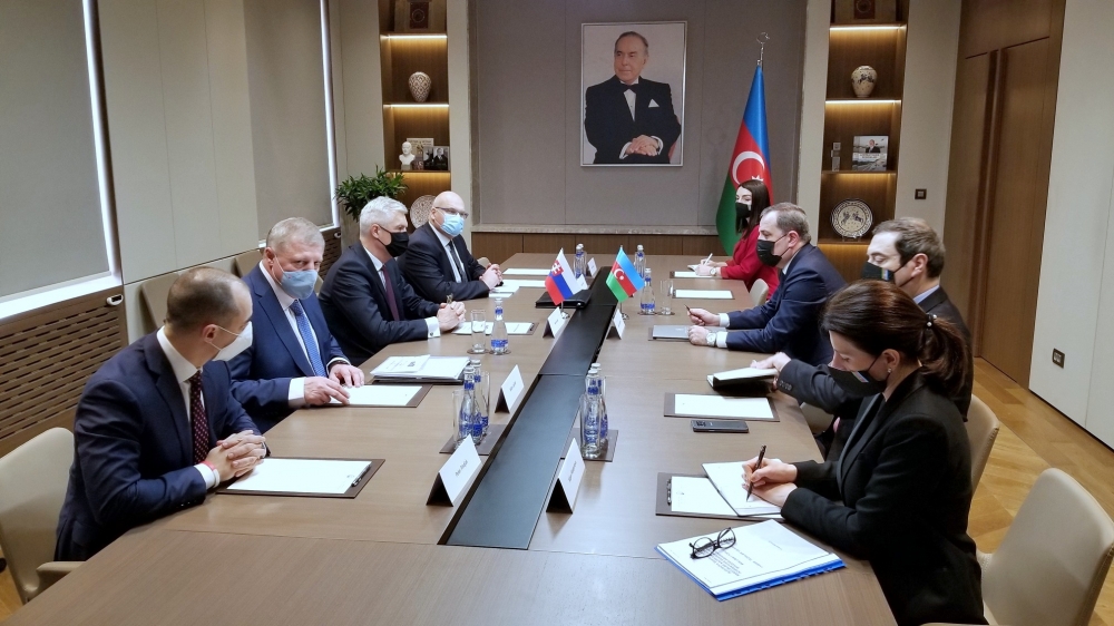 Baku, March 18, AZERTAC Azerbaijani Foreign Minister Jeyhun Bayramov has met with Minister of Foreign and European Affairs of the Slovak Republic Ivan Korcok during his working visit to Azerbaijan. The meeting was attended by large delegations from both sides. Minister Jeyhun Bayramov noted that bilateral relations between Azerbaijan and Slovakia are developing in a number of areas and there are great opportunities to expand this cooperation. The minister emphasized the importance of carrying out consistent work with the aim of developing bilateral cooperation in the economic sphere, as well as encouraging mutual investments. Minister Ivan Korcok pointed to his meeting with the President of Azerbaijan. He underlined the importance of continuing the existing political dialogue between the two countries, as well respecting the principles of international law, which are the basis of interstate relations. Minister Bayramov informed his Slovak counterpart about the new situation in the region after the 44-day Patriotic War, the measures Azerbaijan has taken in connection with the implementation of trilateral statements, about the activities of the Armenian side that do not correspond to the obligations assumed by this country, the mine threat which poses a direct threat to the life of people in the liberated territories, on Armenia's refusal to provide the Azerbaijani side with mine maps in violation of international humanitarian law. The ministers also discussed cooperation within international organizations. During the meeting, the sides also discussed other issues of mutual interest.