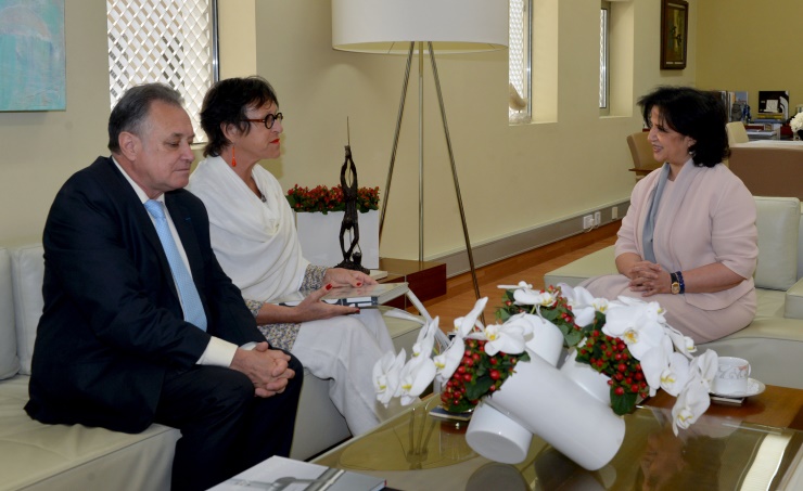Abu Dhabi, Nov. 5 (BNA): Shaikha Mai bint Mohammed Al Khalifa, President of Bahrain Authority for Culture and Antiquities (BACA), today received Marielle Pic, Director of ME Antiquities Department of the Parisian Louvre Museum.