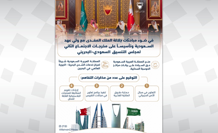 Manama, Dec. 10 (BNA): Following talks held between His Majesty King Hamad bin Isa Al Khalifa and His Royal Highness Prince Mohammed bin Salman bin Abdulaziz Al Saud, the Crown Prince, Deputy Prime Minister and Minister of Defense of the Kingdom of Saudi Arabia, and based on the outcomes of the second Saudi-Bahraini Coordination Council meeting, co-chaired by His Royal Highness Prince Salman bin Hamad Al Khalifa, the Crown Prince and Prime Minister of the Kingdom of Bahrain, and His Royal Highness Prince Mohammed bin Salman bin Abdulaziz Al Saud, the Crown Prince, Deputy Prime Minister and Minister of Defense of the Kingdom of Saudi Arabia, it was agreed that: