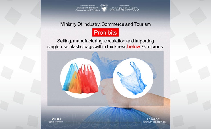 Manama, Apr. 24 (BNA): The Ministry of Industry, Commerce, and Tourism (MOICT) has issued an order to ban selling, manufacturing, circulating and importing single-use plastic bags, which are less than 35 microns in thickness.