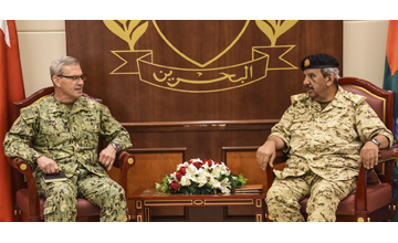 Manama, July 16 (BNA): BDF Commander-in-Chief Field Marshal Shaikh Khalifa bin Ahmed Al Khalifa today received the US CENTNAVCOM/5th Fleet/Combined Maritime Forces Commander V. Admiral Scott A. Stearney.