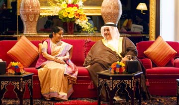 Manama, July 15 (BNA): Minister of Foreign Affairs, Shaikh Khalid bin Ahmed bin Mohammad Al Khalifa, met today with the Minister of External Affairs of the Republic of India, Sushma Swaraj, who is on an official visit to the Kingdom. The Minister of Foreign Affairs praised the developing strong historic relations between the Kingdom of Bahrain and the Republic of India, which reflect the keenness of the two countries to optimize all opportunities of joint cooperation to achieve mutual interests. Minister Swaraj expressed sincere thanks and appreciation for the hospitality she has received in the Kingdom, which reflects the strength of the friendly relations between the Kingdom of Bahrain and the Republic of India in various fields. She also wished Bahrain continued progress and prosperity. The second meeting of the Bahraini-Indian High Joint Commission was held under the chairmanship of the Minister of Foreign Affairs and his Indian Counterpart. The Minister of Foreign Affairs affirmed that the strength of the historic relations between the two countries have resulted in bringing their people together. He added that the visits of His Majesty King Hamad bin Isa Al Khalifa, His Royal Highness the Prime Minister, Prince Khalifa bin Salman Al Khalifa and His Royal Highness the Crown Prince, Deputy Supreme Commander and First Deputy Prime Minister, Prince Salman bin Hamad Al Khalifa to the Republic of India resulted in finding new areas for joint cooperation. The Minister of Foreign Affairs praised the contributions of the Indian community to the progress and development of the Kingdom of Bahrain and the strengthening of bilateral relations. He praised the mutual support between the two countries in all fields, highlighting the role of the Republic of India in promoting common interests in security, peace and development at both the regional and international levels. Shaikh Khalid affirmed that the Kingdom places great importance on the agreements and memorandums of understanding signed on joint cooperation, adding that the second meeting of the Bahraini-Indian High Joint Commission will have positive outcomes in various fields. Minister Swaraj asserted the Indian government’s keenness to strengthen relations with the Kingdom of Bahrain, noting the constant development of these relations in the fields of trade, economy, culture and social communication. She lauded the high level of support provided to the Indian community in the Kingdom of Bahrain, and expressed hope to further develop all ties with the Kingdom for the benefit of the two countries and their friendly people. The Minister of Foreign Affairs and his Indian counterpart signed an agreement between the government of the Kingdom of Bahrain and the government of the Republic of India on the exemption of visa requirements for diplomatic and private passport holders, a memorandum of understanding between the government of the Kingdom of Bahrain and the government of the Republic of India on cooperation in the field of renewable energy, and a memorandum of understanding between the government of the Kingdom of Bahrain and the government of the Republic of India on cooperation in the field of health care. The second meeting of the Bahraini-Indian High Joint Commission issued a statement condemning terrorism in all its forms and manifestations. The two sides also agreed to work together in the field of space technology and discussed cooperation between the Bahraini National Space Science Agency and the Indian Space Research Organization, to benefit from the Indian expertise in the operation and launch of satellites and other space areas. It was agreed to hold the third meeting of the Bahraini-Indian High Joint Commission in New Delhi.