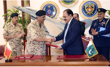 Manama, June 26 (BNA): Commander-in-Chief of Bahrain Defence Force (BDF) Field Marshal Shaikh Khalifa bin Ahmed Al Khalifa signed with Pakistani Defence Secretary Zamir Ul Hassan Shah a joint defence cooperation agreement.