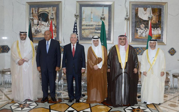 Manama, Jul 12 (BNA): The Minister of Foreign Affairs, Shaikh Khalid bin Ahmed bin Mohammed Al Khalifa, participated in the meeting of Ministers of Foreign Affairs of the Kingdom of Bahrain, the Kingdom of Saudi Arabia, the United Emirates and the Republic of Egypt, alongside US Secretary of State, Rex Tillerson, in Jeddah. The meeting was attended by Kuwait’s Minister of Cabinet Affairs and Acting Minister of Information, Shaikh Mohammed Al-Abdullah Al-Mubarak Al-Sabah.