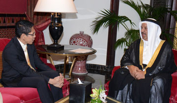 Manama, Oct. 30 (BNA): BDF Commander-in-Chief Field Marshal Shaikh Khalifa bin Ahmed Al Khalifa received at the Ritz Carlton Hotel today Singaporean Senior Minister of State for Foreign and Defence Affairs Dr. Mohammed Maliki bin Othman and his accompanying delegation on the occasion of his visit to Bahrain to take part in the 11th edition of the Manama Dialogue.