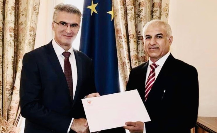 Valetta, Sept. 18 (BNA): Ambassador of the Kingdom of Bahrain to the Republic of Malta Ibrahim Mahmoud Ahmed Abdullah presented a copy of his credentials to Minister of Foreign Affairs and Trade Promotion of the Republic of Malta, Carmelo Abela.