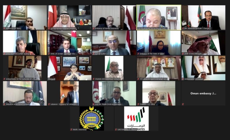 Jakarta, May 28 (BNA): The Ambassador of the Kingdom of Bahrain in Jakarta, Dr. Mohammed Ghassan Mohammed Adnan Sheikho, today participated in the virtual meeting of the Ambassadors of the Arab countries accredited to the Republic of Indonesia with the Minister of Foreign Affairs of the Republic of Indonesia, Retno Marsudi, based on the proposal submitted on a meeting of the Council of Arab Ambassadors accredited to the Republic of Indonesia, to discuss the latest developments in the Palestinian cause.
