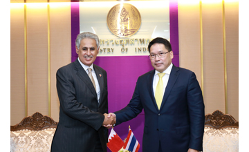Bangkok, July 6 (BNA): Minister of Industry, Commerce and Tourism Zayed bin Rashid Al Zayani met with his Thai counterpart Utama Savanayon, in the presence of Bahraini Ambassador to Thailand Ahmed Al Hajeri, Industry, Commerce and Tourism Ministry Assistant Undersecretary for Foreign Trade Imen Ahmed Al Dusari, Assistant Undersecretary for Local Trade Hamid Yusef Rahma and members of the accompanying delegation. Both ministers discussed bilateral relations and ways of bolstering cooperation between both countries mainly in the economic field. The Industry, Commerce and Tourism Minister stressed Bahrain’s keenness on boosting economic relations with mainly friendly countries, hailing investment projects availing of Bahrain’s strategic location. Discussions also focused on the importance of cooperation in the industrial field.