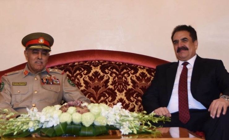Manama, Oct.27 (BNA): Bahrain Defence Force (BDF) Chief of Staff Lieutenant-General Dheyab bin Saqr Al-Nuaimi received Islamic Military Counter Terrorism Coalition (IMCTC) Military Commander General Raheel Sharif , on his arrival at the Bahrain International Airport to attend the Bahrain International Defence Exhibition and Conference (BIDEC 2019). Lt. Gen. Al-Nuaimi welcomed the IMCTC Chief, wishing him a good stay in the Kingdom of Bahrain.