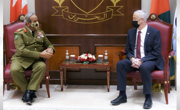 Manama, Feb. 3 (BNA): Bahrain Defence Force (BDF) Commander-in-Chief Field Marshal Shaikh Khalifa bin Ahmed Al Khalifa received at the BDF General Command, Israeli Defence Minister Benny Gantz and the accompanying delegation, in the presence of Defence Affairs Minister Lieutenant-General Abdulla bin Hassan Al Noaimi.