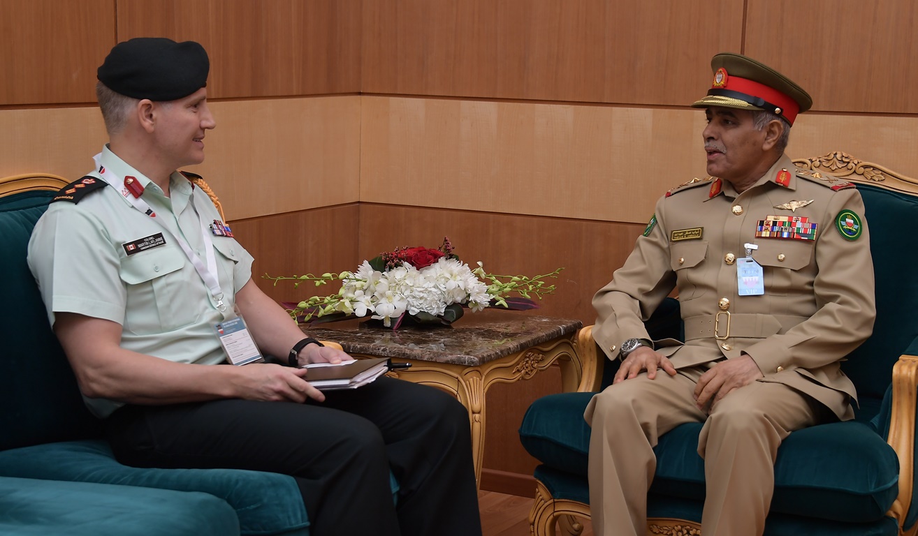 Manama, Oct 16. (BNA): Bahrain Defence Force (BDF) Chief of Staff Dheyab bin Saqr Al-Nuaimi held a meeting with Abu Dhabi-based Canadian Military Attaché to Bahrain Colonel Martin Laflamme. The meeting, which was on the sidelines of the Bahrain International Defence Exhibition and Conference (BIDEC 2017), focused on good bilateral relations.